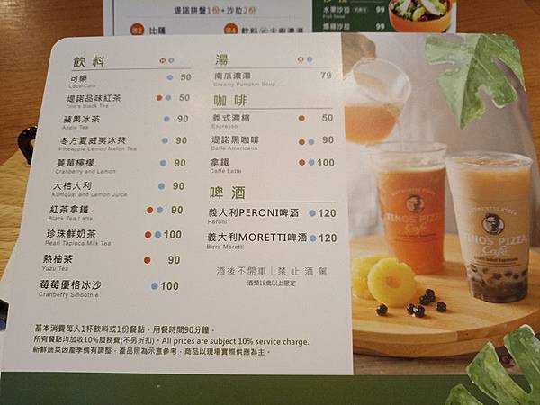 堤諾比薩 TINO'S PIZZA Café菜單參考入上下圖