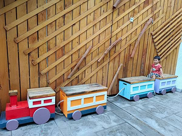 小小孩在木製火車上上下下好不開心~