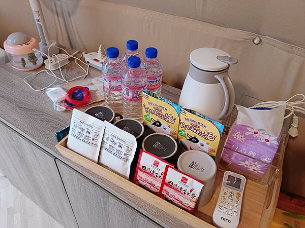 帳內備品方面水与松森林莊園有熱水壺、掛耳咖啡、日月潭紅茶外竟然還有奶粉給小朋友喝!!!